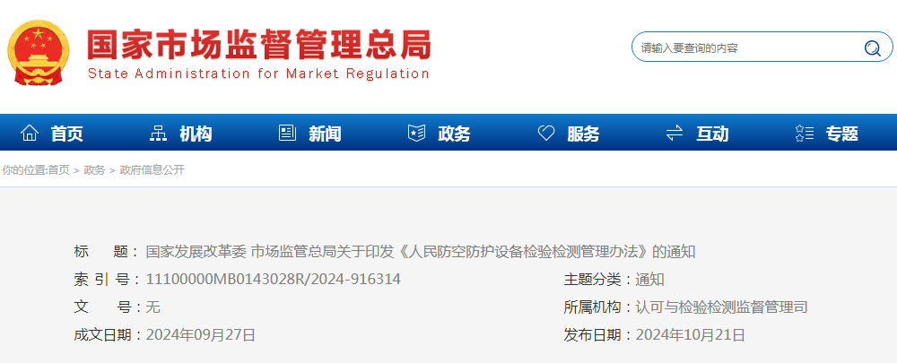 人民防空防護(hù)設(shè)備檢驗檢測管理辦法 印發(fā)國家發(fā)展改革委 市場監(jiān)管總局關(guān)于印發(fā)《人民防空防護(hù)設(shè)備檢驗檢測管理辦法》的通知發(fā)改國防規(guī)〔2024〕1450號各省、自治區(qū)、直轄市、新疆生產(chǎn)建設(shè)兵團(tuán)發(fā)展改革委、市場監(jiān)管局、國防動員(人民防空)辦公室:為加強(qiáng)人民防空防護(hù)設(shè)備檢驗檢測管理,確保人民防空防護(hù)設(shè)備的各項功能得到正常發(fā)揮,依據(jù)《中華人民共和國產(chǎn)品質(zhì)量法》《中華人民共和國人民防空法》《檢驗檢測機(jī)構(gòu)資質(zhì)認(rèn)定管理辦法》等有關(guān)法律法規(guī),我們制定了《查看詳情>>