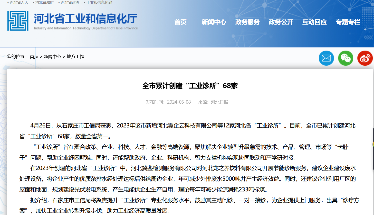 河北冀鑒檢測服務(wù)有限公司工業(yè)診所工作獲得上級表揚工業(yè)診所”旨在聚合政策、產(chǎn)業(yè)、科技、人才、金融等高端資源,聚焦解決企業(yè)轉(zhuǎn)型升級急需的技術(shù)、產(chǎn)品、管理、市場等“卡脖子”問題,幫助企業(yè)紓困解難。同時,還能幫助政府、企業(yè)、科研機構(gòu)、智力支撐機構(gòu)實現(xiàn)協(xié)同聯(lián)動和產(chǎn)學研對接。 在2023年創(chuàng)建的河北省“工業(yè)診所”中,河北冀鑒檢測服務(wù)有限公司對河北龍之養(yǎng)飲料有限公司開展節(jié)能診斷服務(wù),建議企業(yè)建設(shè)廢水處理設(shè)備,將企業(yè)產(chǎn)生的優(yōu)質(zhì)雜排水經(jīng)處理達標后供給周邊企業(yè),查看詳情>>